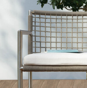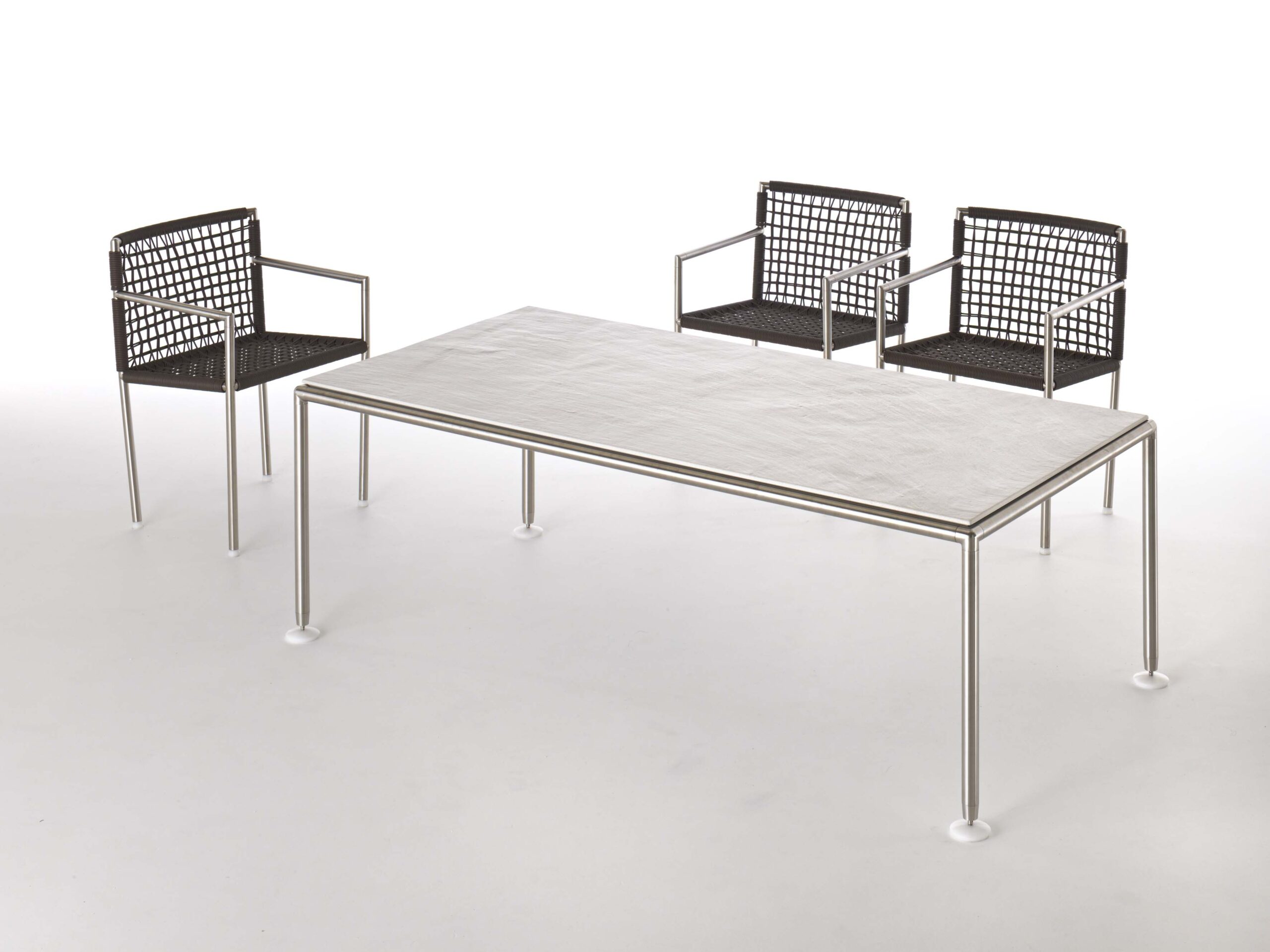 Telaio in acciaio inox satinato o verniciato a polvere con piano in alluminio verniciato a polvere o in pietra di quarzo con “effetto ardesia”